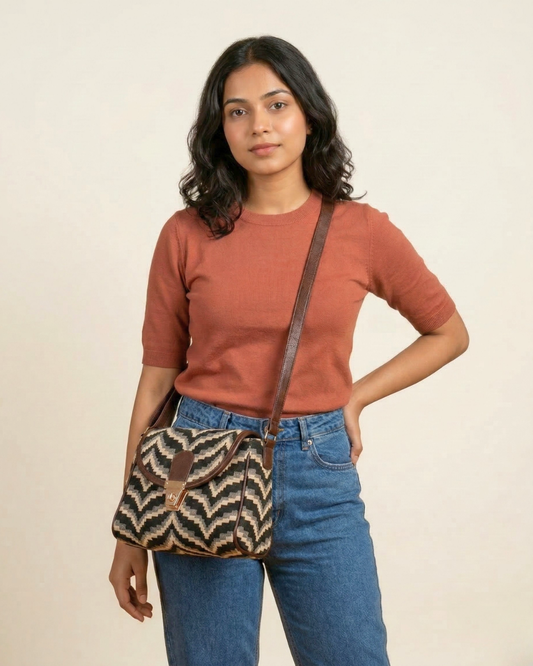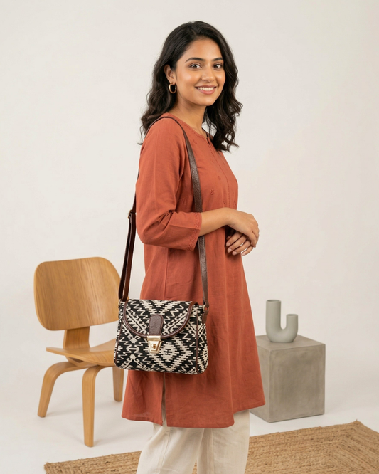 Jacquard Cotton Turn Button Sling Bag - Tribal Weave