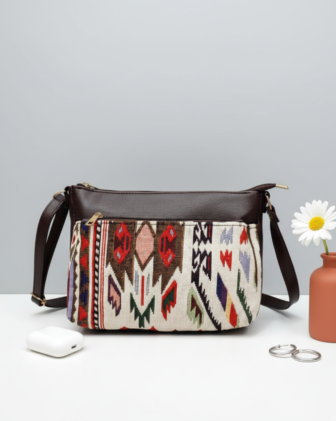 This chic and compact sling bag is the perfect accessory for modern life. Crafted from high-quality jacquard fabric, it offers a sophisticated texture and a durable finish.1 The bag features three separate compartments, providing ample space to organize your essentials—from your phone and wallet to your keys and makeup.