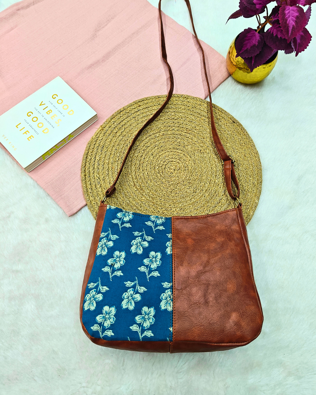Introducing our trendy handblock printed and ikkat cotton Sling Bag, the perfect accessory for adding a touch of style to your daily office use or casual outings. Made from high-quality materials, this sling bag showcases a unique blend of handblock prints and ikkat cotton fabric, making it a fashionable choice.