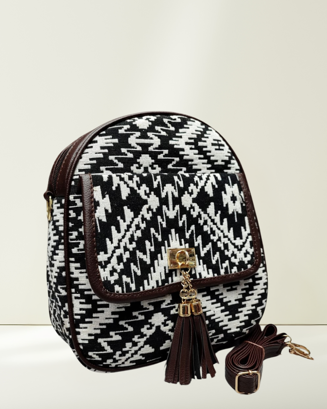Elevate your style game with Surovi Bags' Jacquard Convertible Backpack cum Sling Bag - a stylish and functional addition to your travel backpack collection
