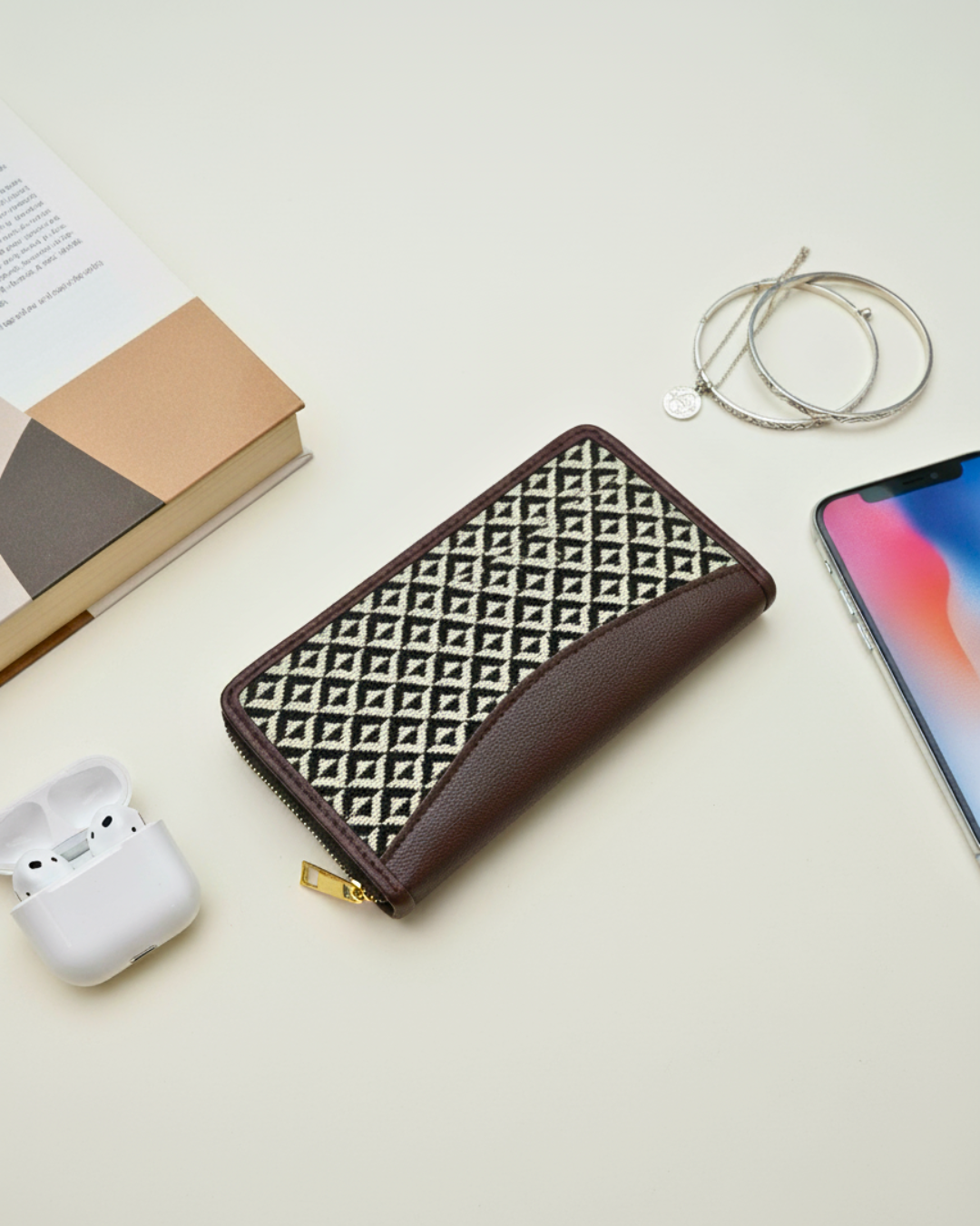 Jacquard Women Zipper Wallet - Monocrome Weave