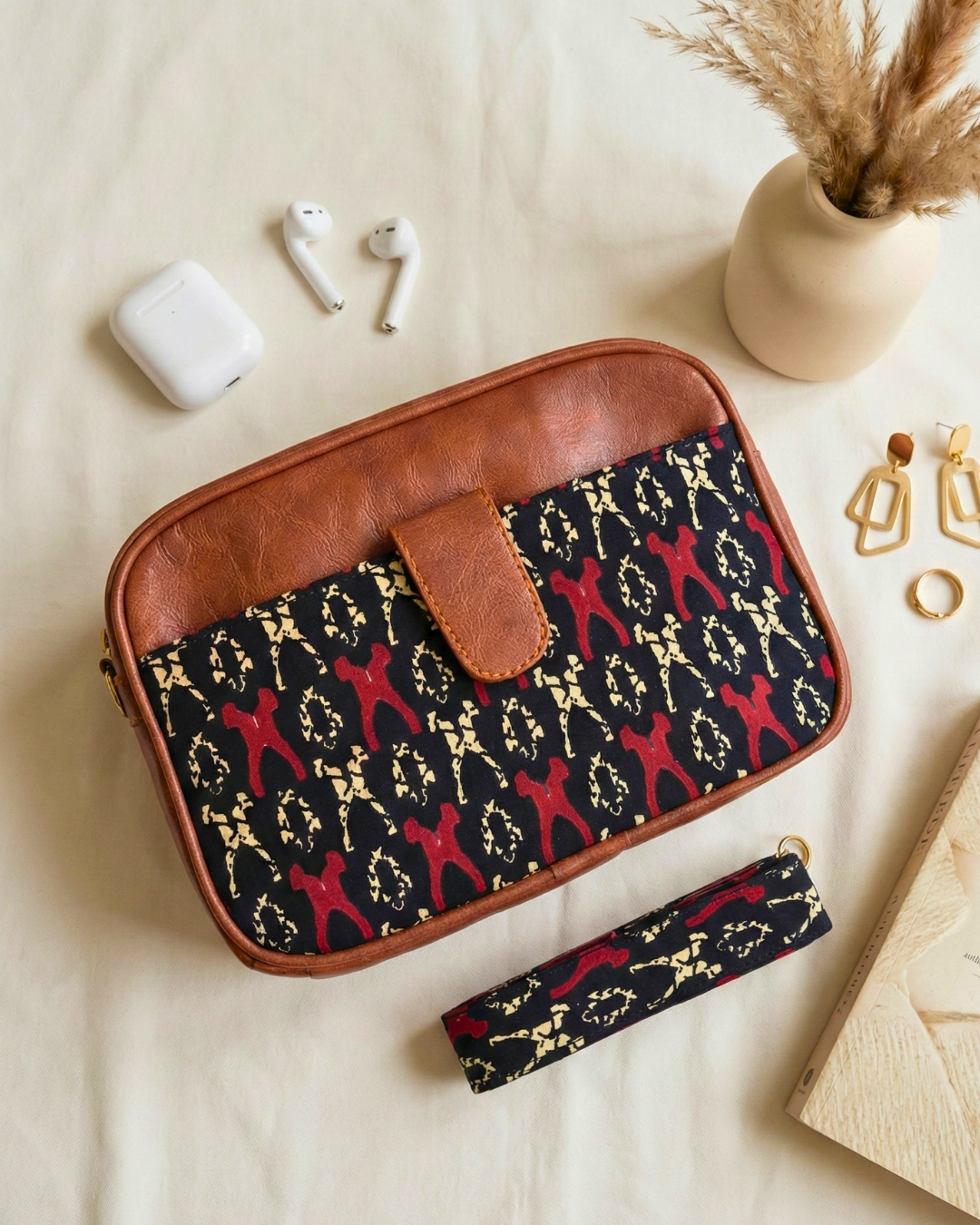 Material Used- Vegan Leather, Handicraft Fabric, Water-resistant inner lining, premium accessories