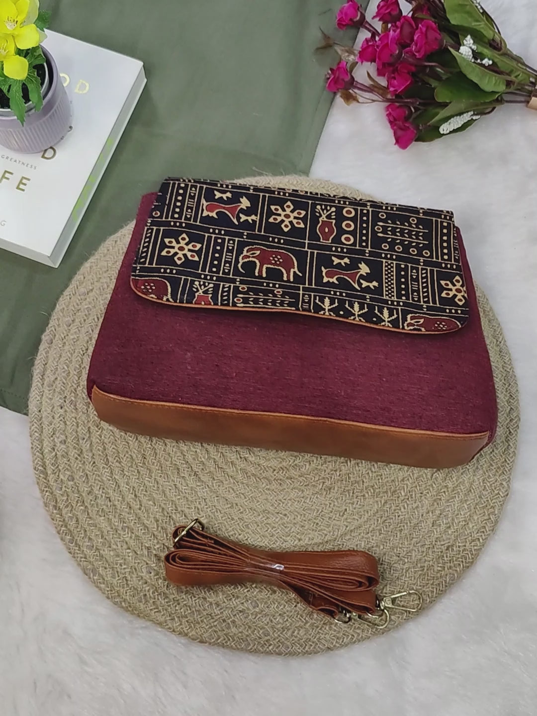 Upgrade your fashion game with this stylish combination sling bag from Surovi brand. Made from trendy ikkat print fabric and plain weave fabric in contrasting colors, this bag is perfect for fashion-forward individuals who want to make a statement.